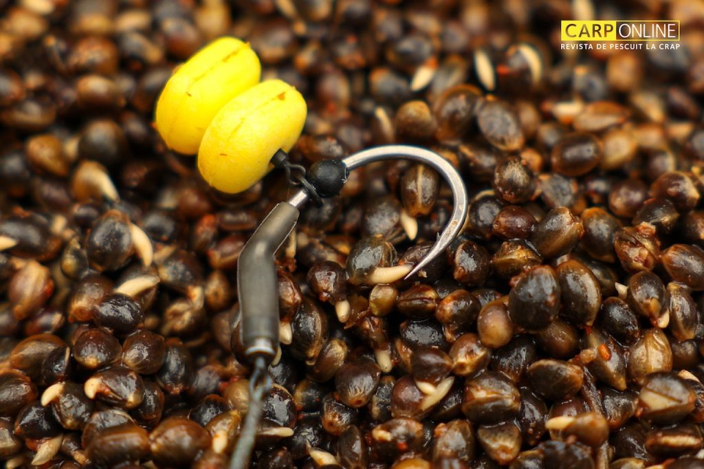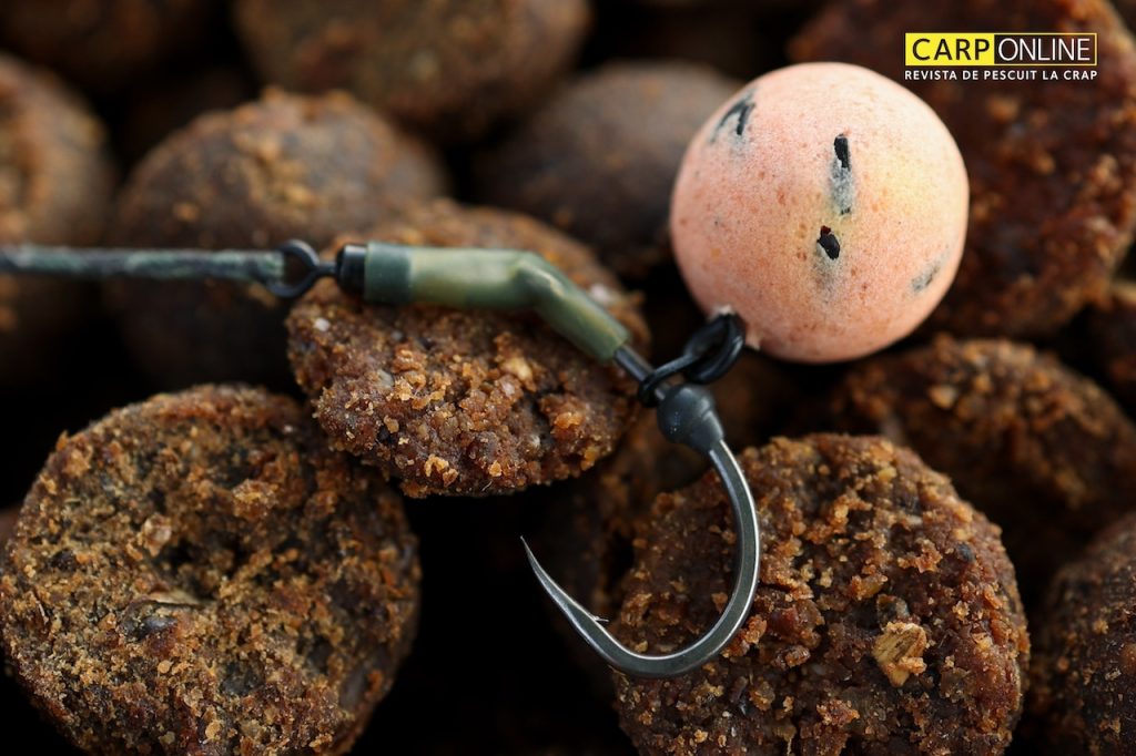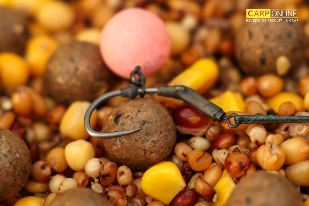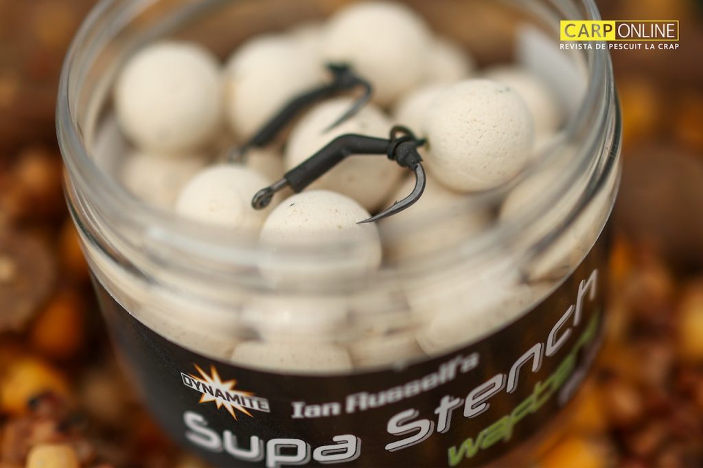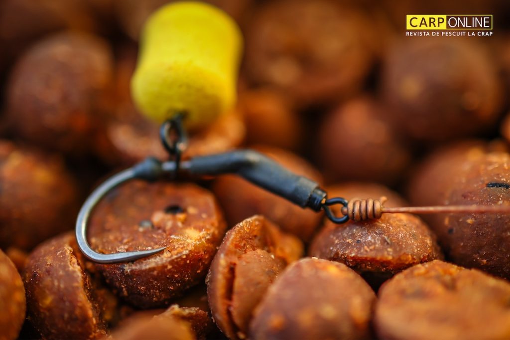 Îmi pregătesc câteva cârlige din timp cu toate componentele puse pe ele, inclusiv boiliesul de cârlig. Le păstrez în borcanul cu wafters. Când vreau să schimb cârligul, iau din borcan un cârlig nou cu wafterul atașat.